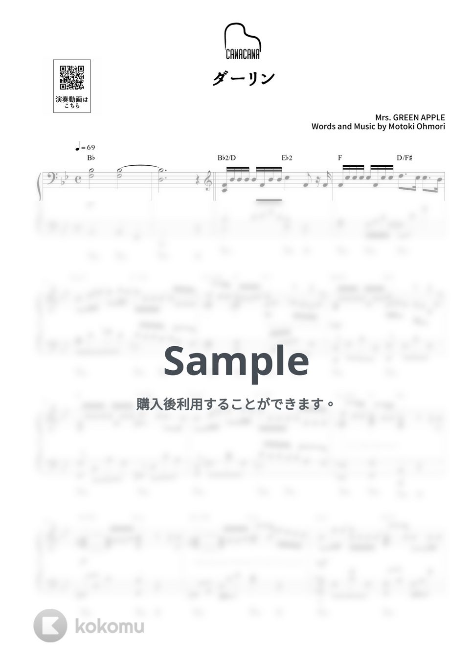 Mrs. GREEN APPLE「ダーリン」の上級ピアノソロ楽譜です。
