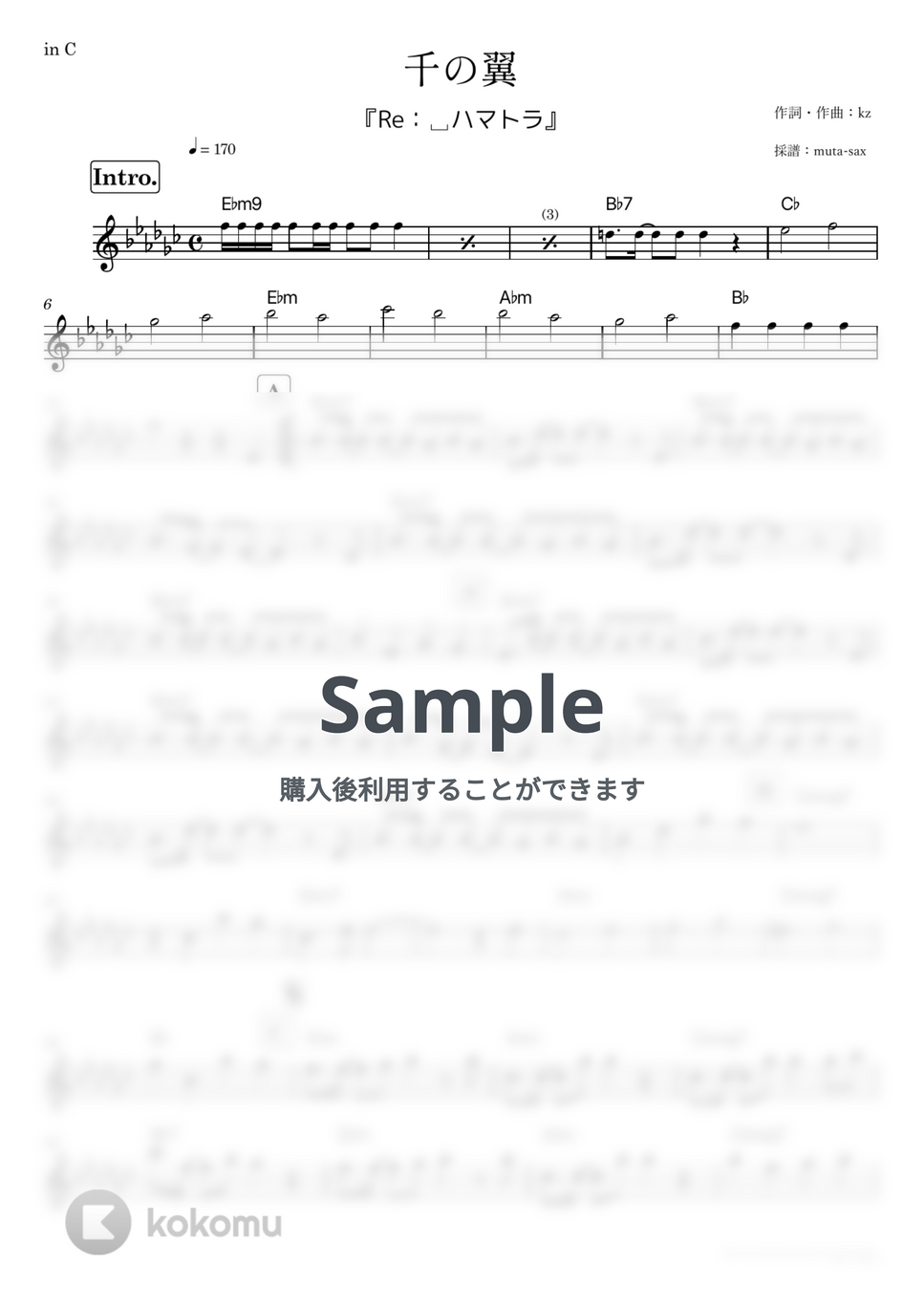 livetune adding Takuro Sugawara(from 9mm Parabellum Bullet) - 千の翼 (『Re:␣ハマトラ』 / in C) by muta-sax