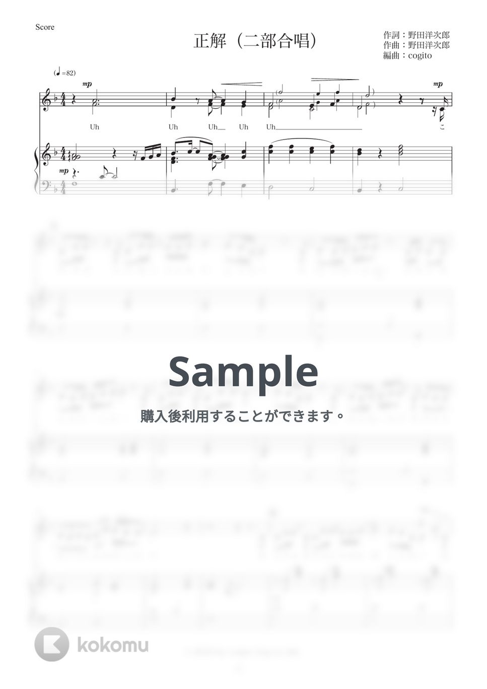 正解(二部合唱)伴奏・音取り動画特典付き (卒業式/合唱/2部合唱/合唱コンクール/同声/混声) RADWIMPS