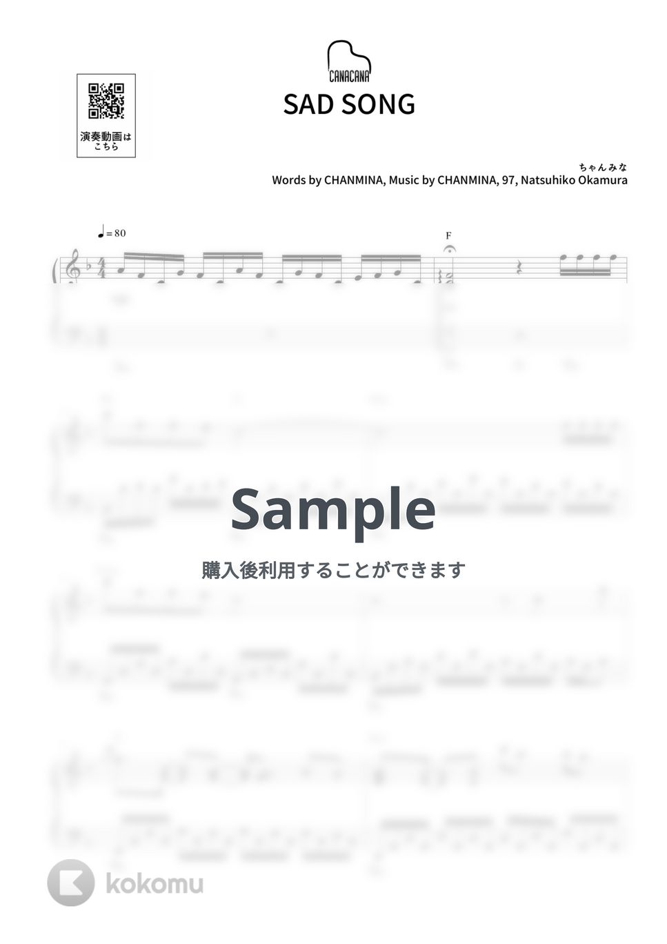 ちゃんみな「SAD SONG」の上級ピアノソロ楽譜です。