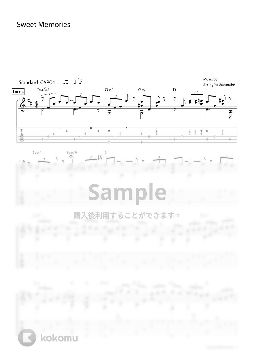 カバーアルバム第2段『This cover 2』収録、松田聖子さんの『Sweet Memories』のソロギターTAB譜です!