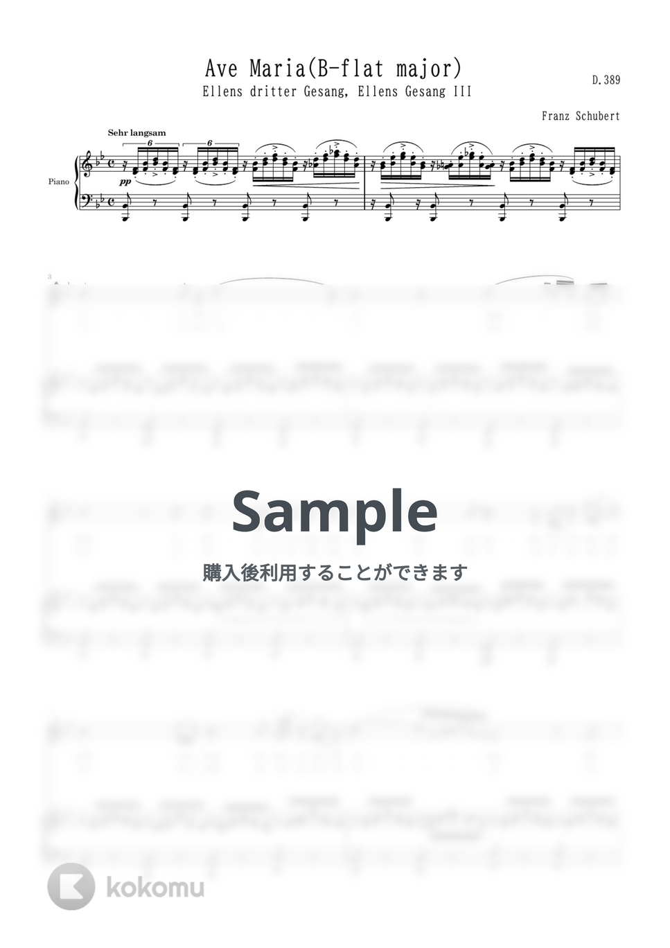 【伴奏音源付き】Ave Maria アヴェ・マリア 変ロ長調(原調) B-flat major/B-dur(original key) (lied/シューベルト//ドイツ歌曲/移調/Transposed/karaoke/accompaniment/SheetMusic/TransposedScore/伴奏楽譜/移調楽譜/) フランツ・シューベルト