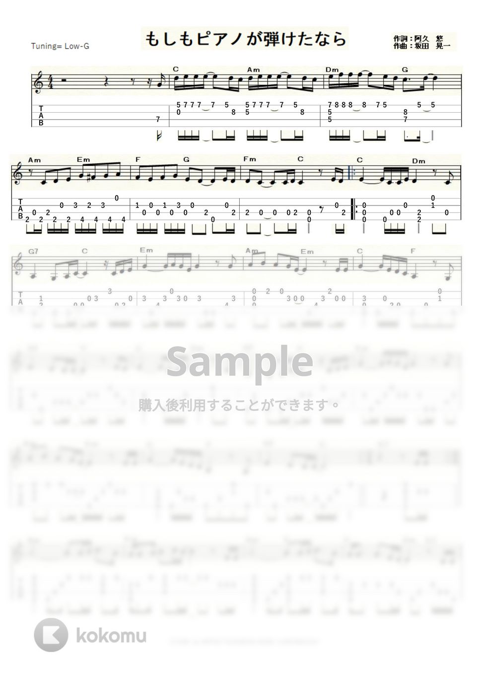 もしもピアノが弾けたなら (ウクレレソロ / Low-G / 中~上級) 西田敏行