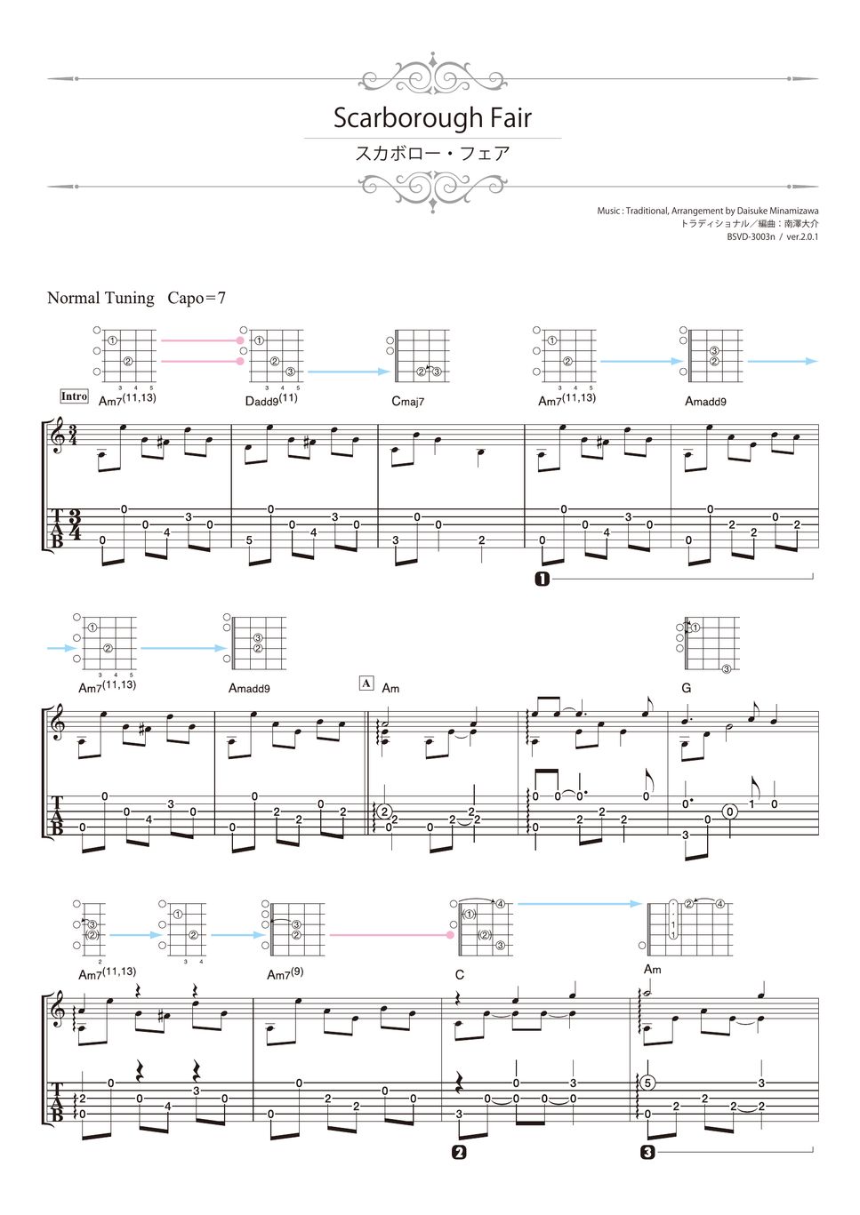 楽譜(五線譜、TAB譜、ダイアグラム譜、カラー軸指線):5ページ