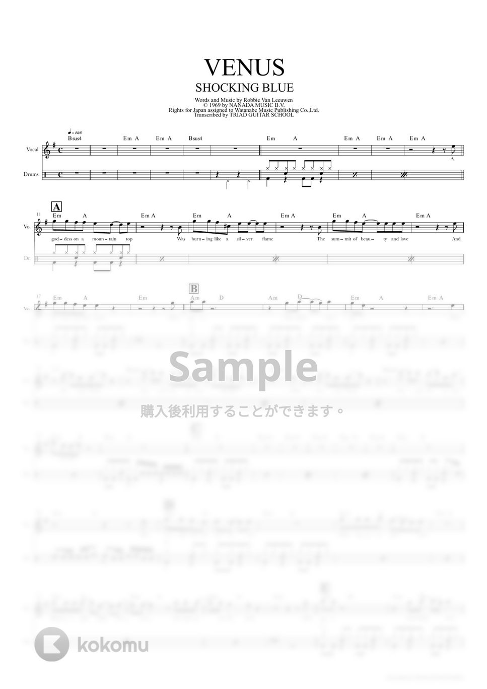 VENUS (ドラムスコア・歌詞・コード付き) SHOCKING BLUE