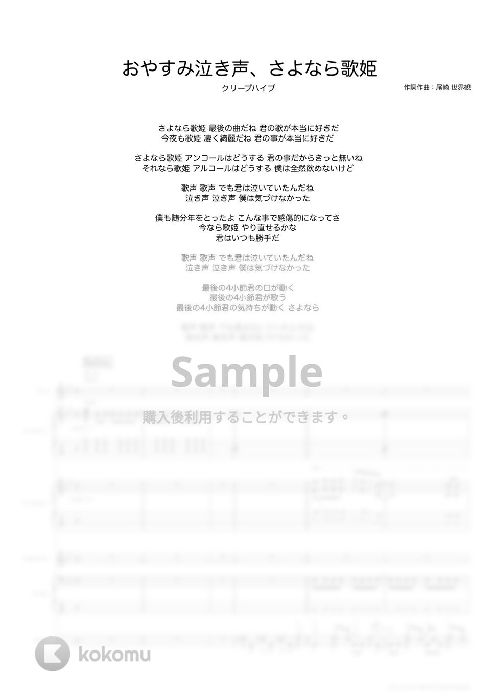 クリープハイプの 1st シングル「おやすみ泣き声、さよなら歌姫」のバンドスコアです。