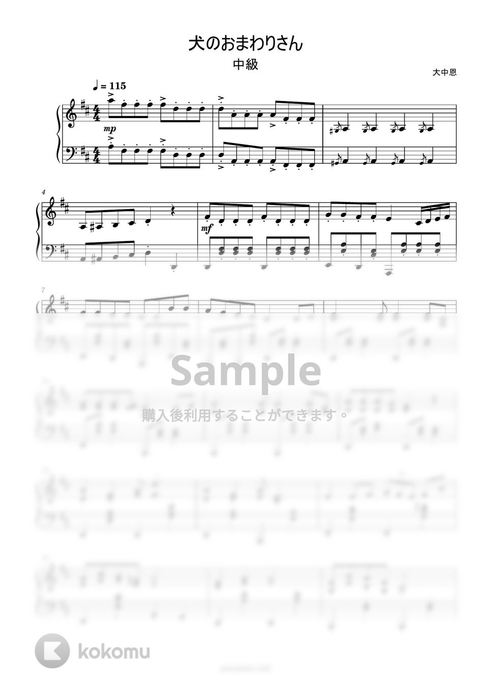 有名な童謡「犬のおまわりさん」のピアノ楽譜です。