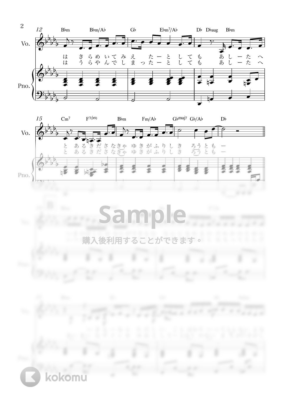ピアノ弾き語り用の楽譜です。