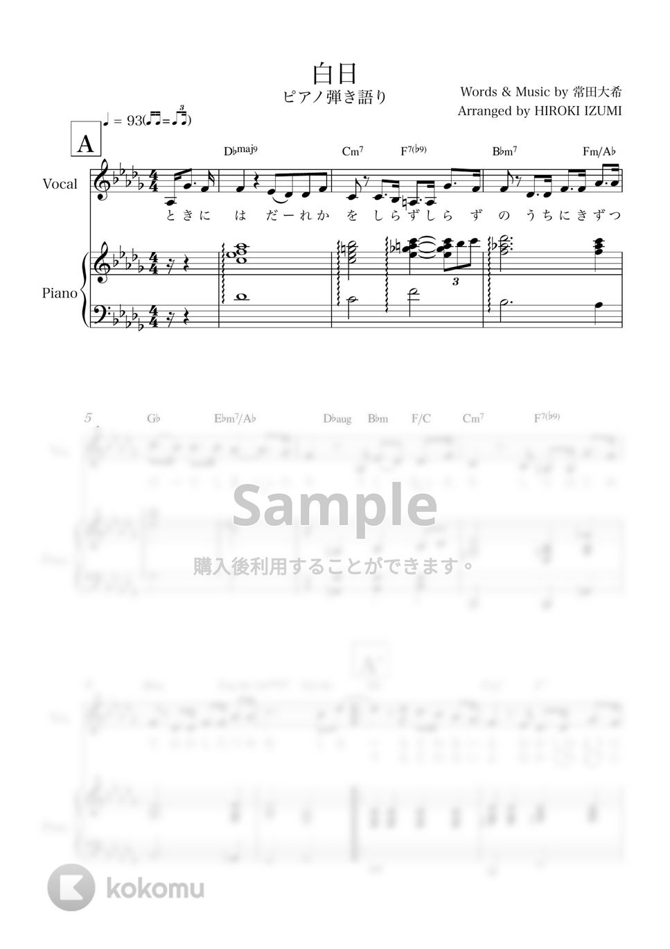 白日 (ピアノ弾き語り) King Gnu