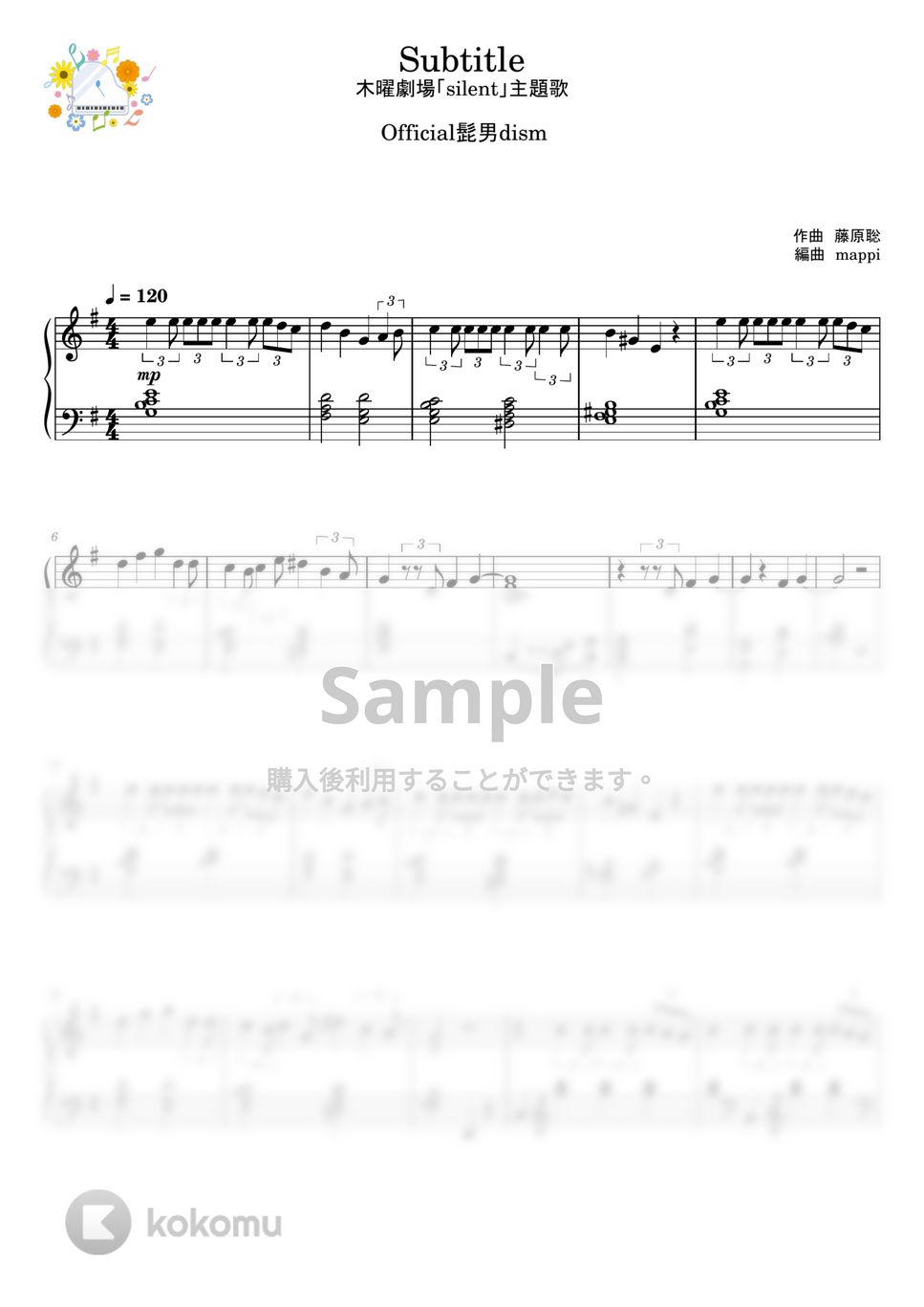 Subtitle (私にも弾ける/ト長調/silent/シンプルアレンジ) Official髭男dism