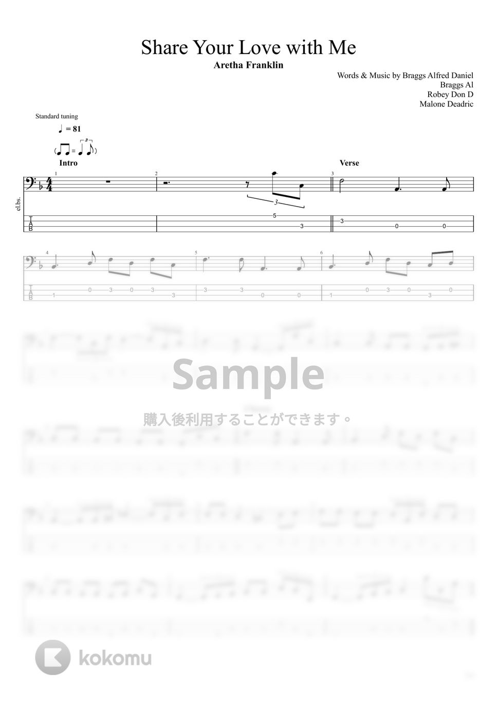 Aretha Franklinの「Share Your Love with Me」ベースタブ譜になります。