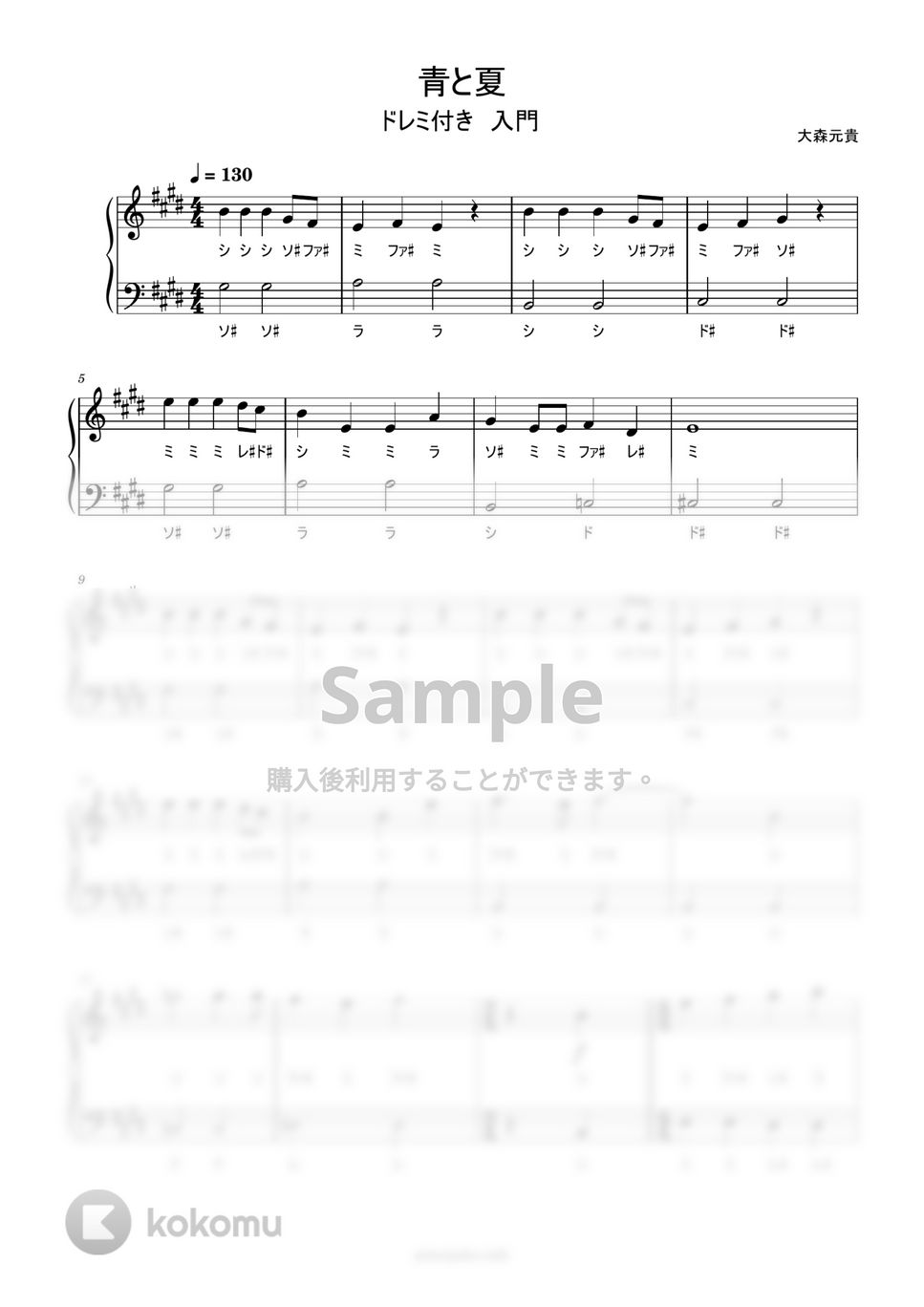 青と夏 (ドレミ付き/簡単楽譜) Mrs. Green Apple