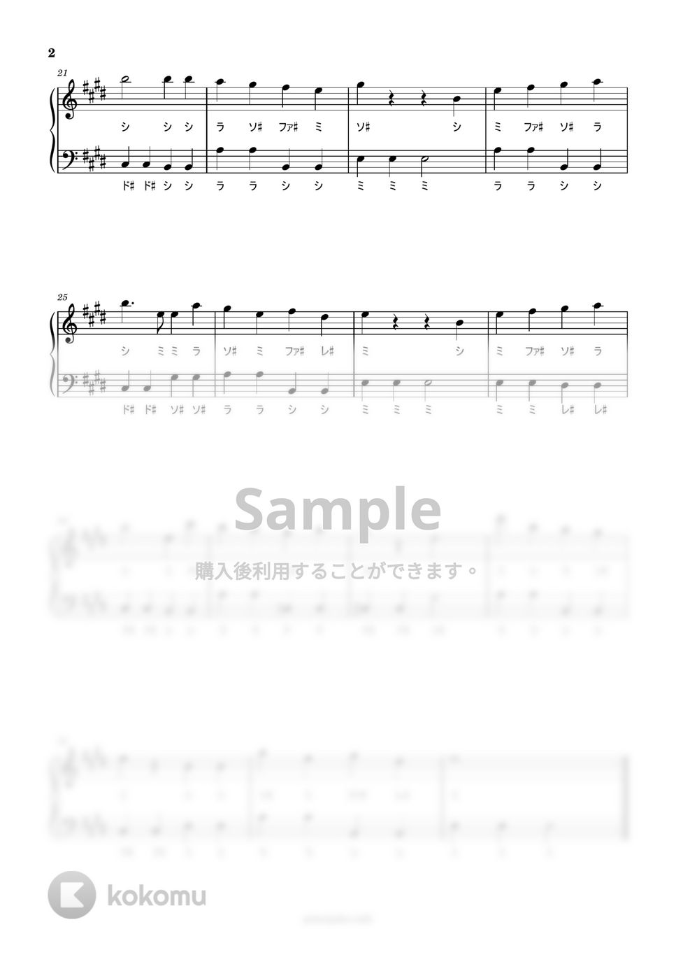 原曲キーのままド・レ・ミの音名を付けています。