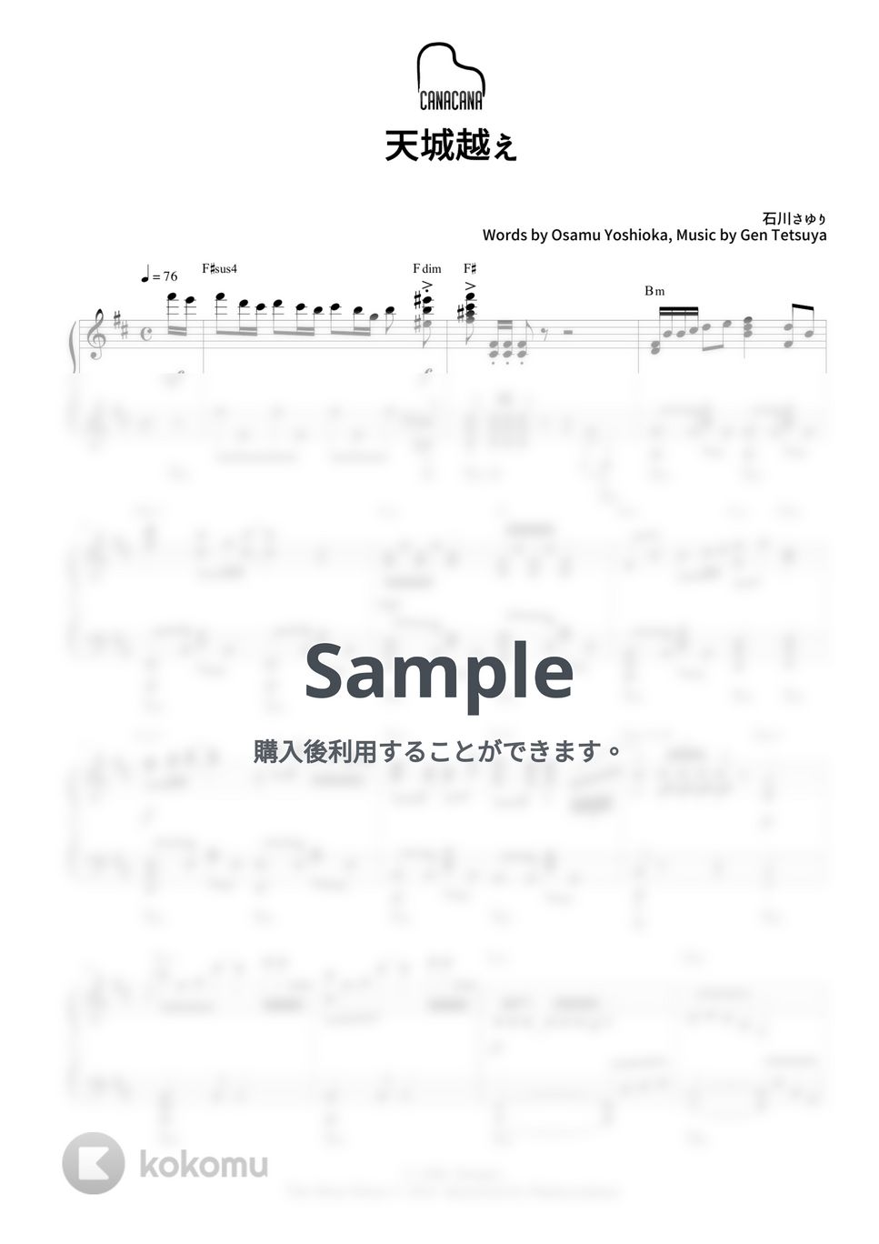 石川さゆりの「天城越え」上級ピアノソロ楽譜です。