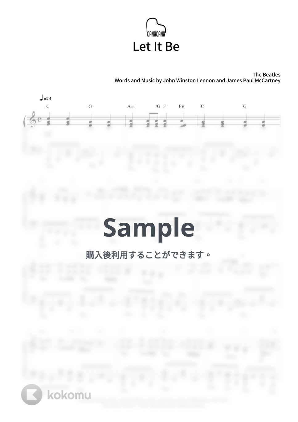 ビートルズの「Let It Be」上級ピアノソロ楽譜です。