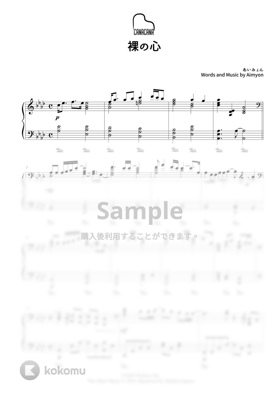 あいみょんの「裸の心」、上級ピアノソロ楽譜です。