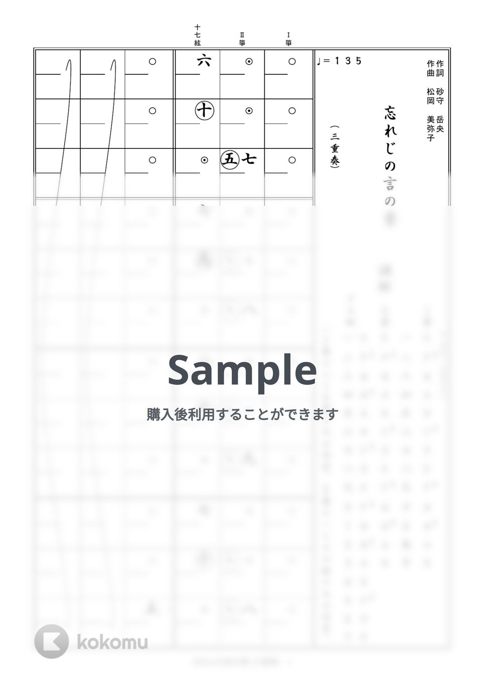箏譜 忘れじの言の葉(三重奏/Ⅰ箏・Ⅱ箏・十七絃) (グリムノーツより) 未来古代楽団feat.安次嶺希和子