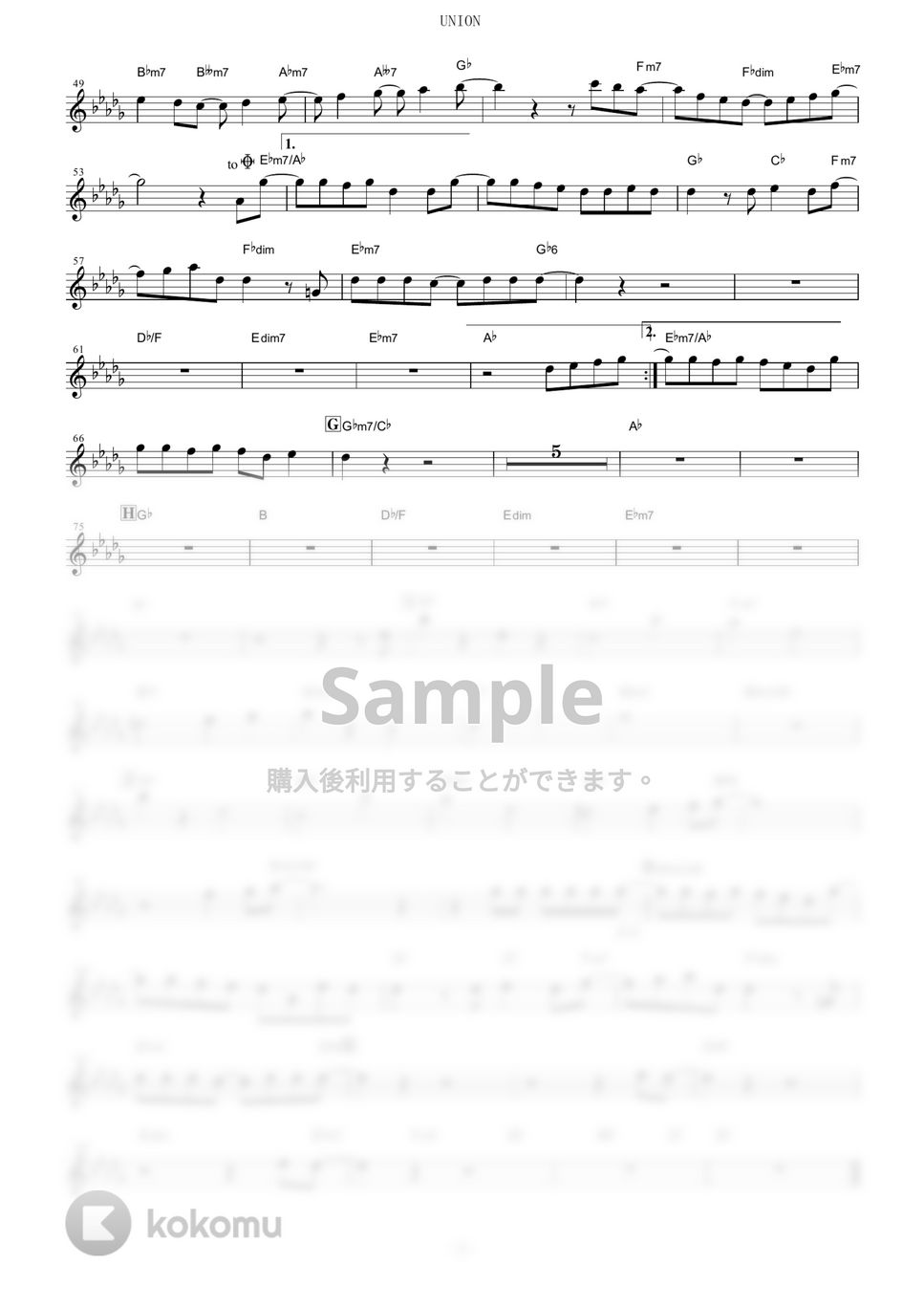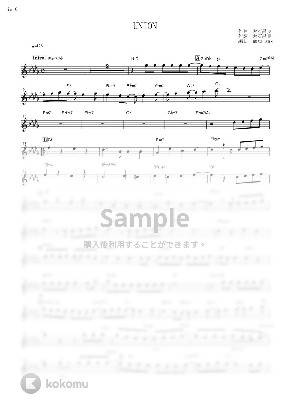 コンサートキー(in C)の譜面で原曲キー、フルサイズです。