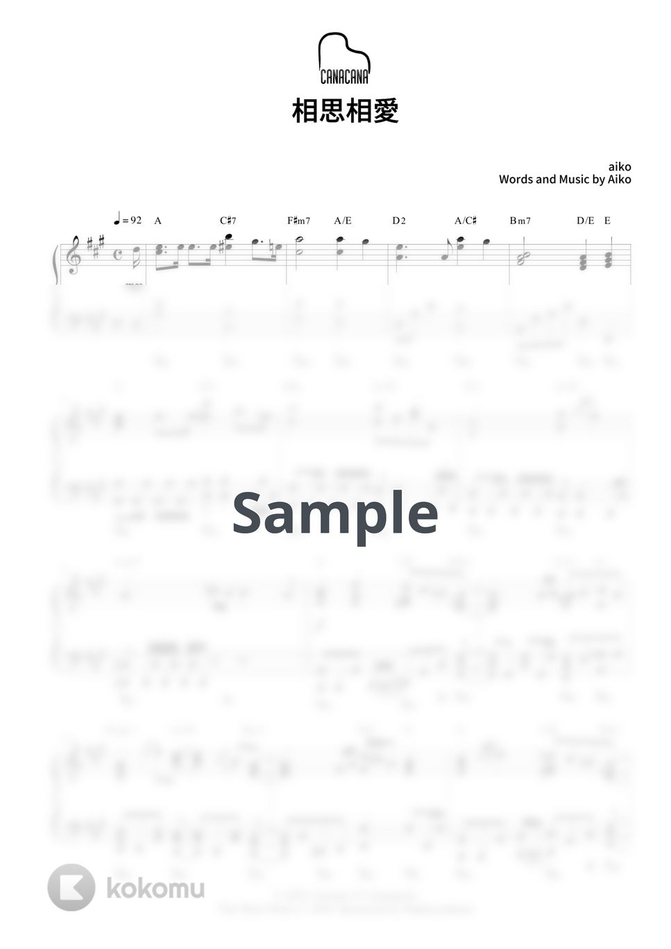 aikoの「相思相愛」上級ピアノソロ楽譜です。