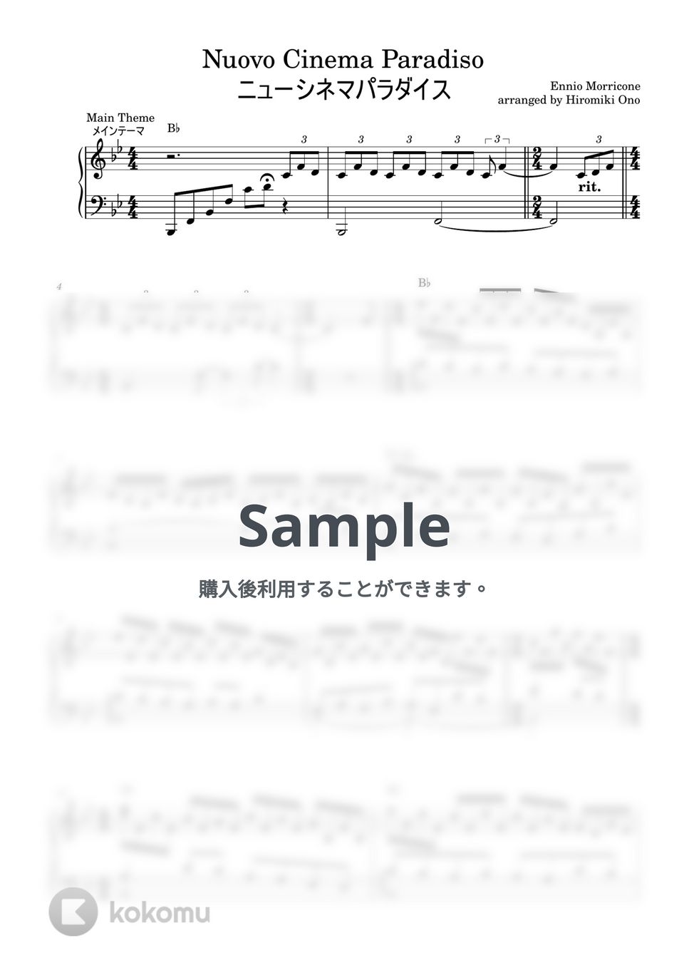 ニューシネマパラダイスメドレーをピアノソロ楽譜にしました。