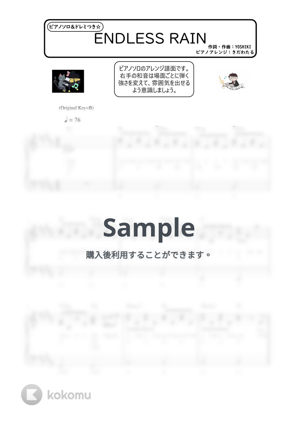 ENDLESS RAIN (ピアノソロ / 中級 / 原曲キー / ドレミつき / 歌詞つき) X JAPAN