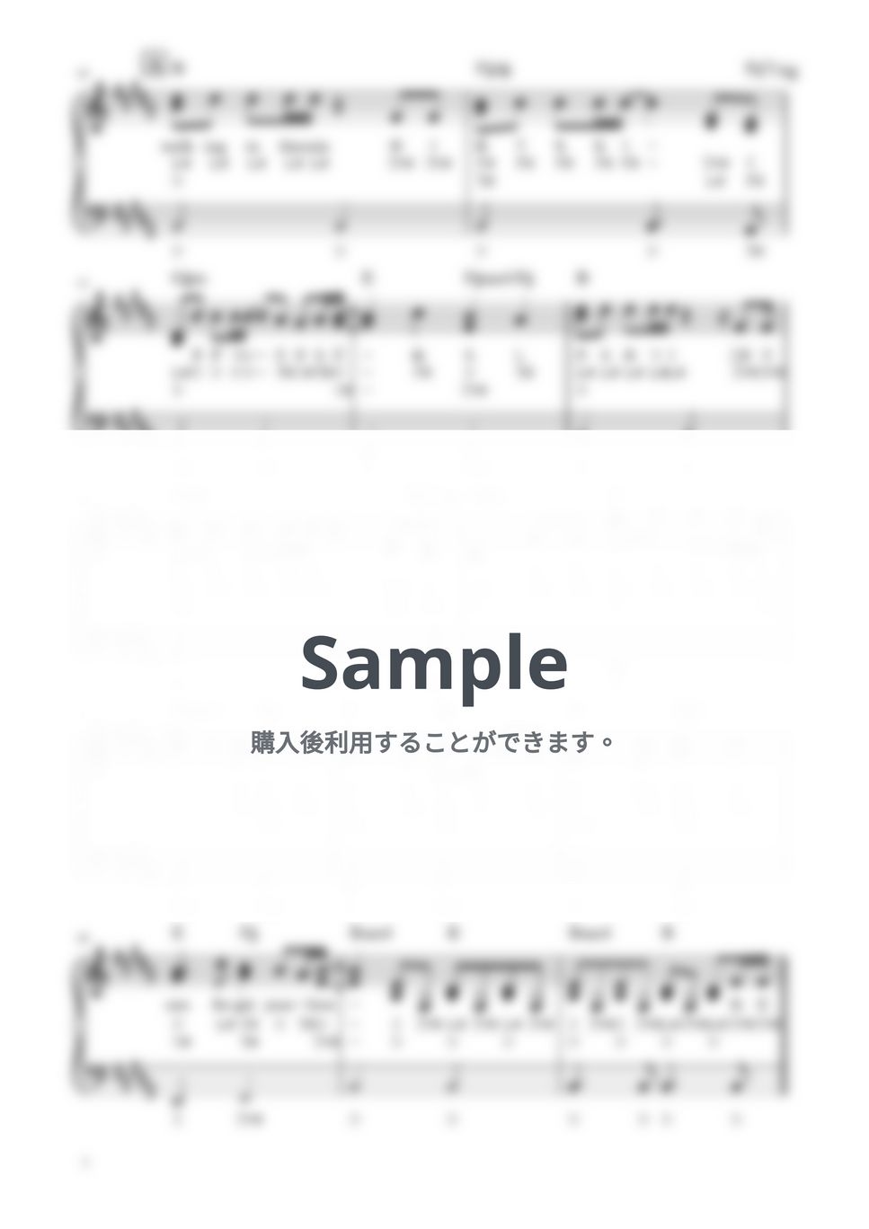 ピアノソロのアレンジ譜面(ドレミ付き)です。原曲キー(嬰ロ長調)・フルサイズ、イントロ・間奏などのフレーズも極力再現しています。 右手はメロディ+和音、左手は和音伴奏です。 右手の和音は場面ごとに弾く強さを変えて、雰囲気を出せるよう意識しましょう。間奏のピアノソロは6連符など細かいフレーズも出てくるので、指番号を決めて部分練習をよくしましょう。