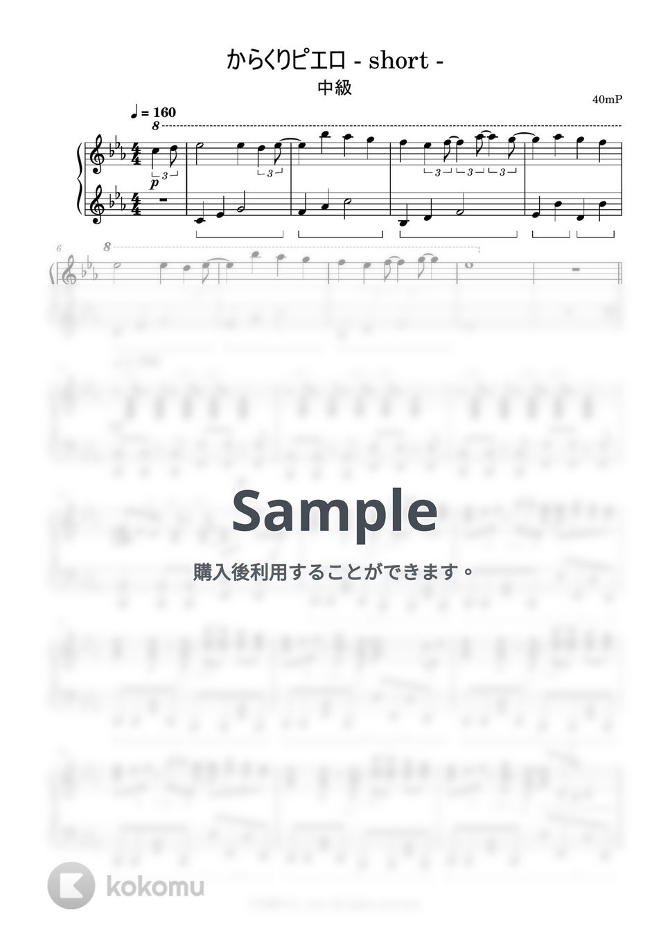 40mPさんのボカロソング『からくりピエロ』のピアノ楽譜です。