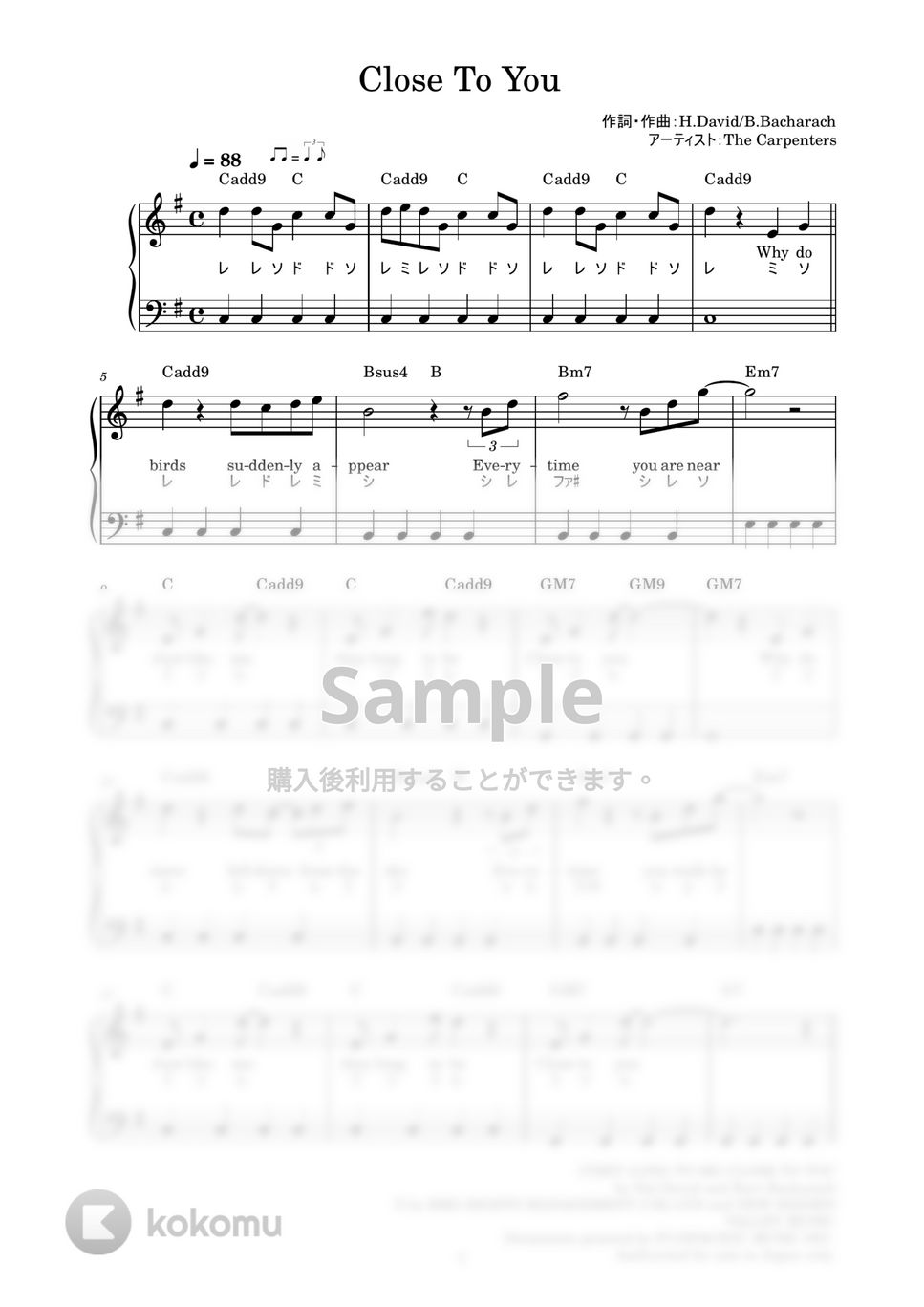 Close To You (かんたん / 歌詞付き / ドレミ付き / 初心者) Carpenters