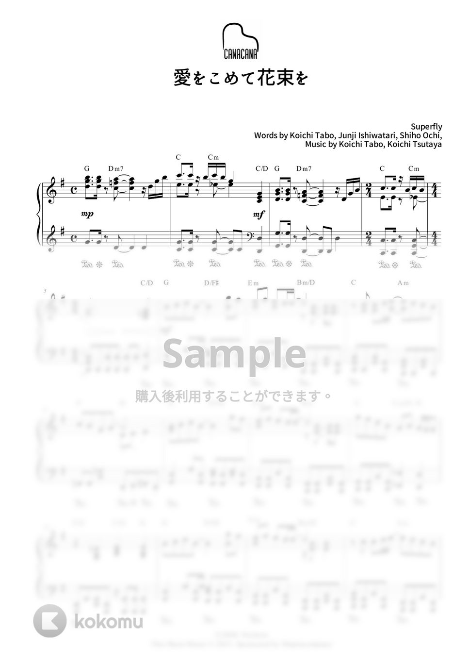 Superflyの 「愛をこめて花束を」、上級ピアノソロ楽譜です。
