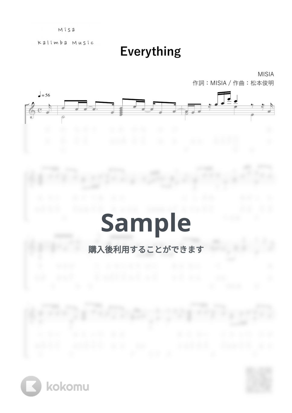 EVERYTHING / 17音カリンバ / 英音名表記 (歌詞付き / 模範演奏付き) MISIA