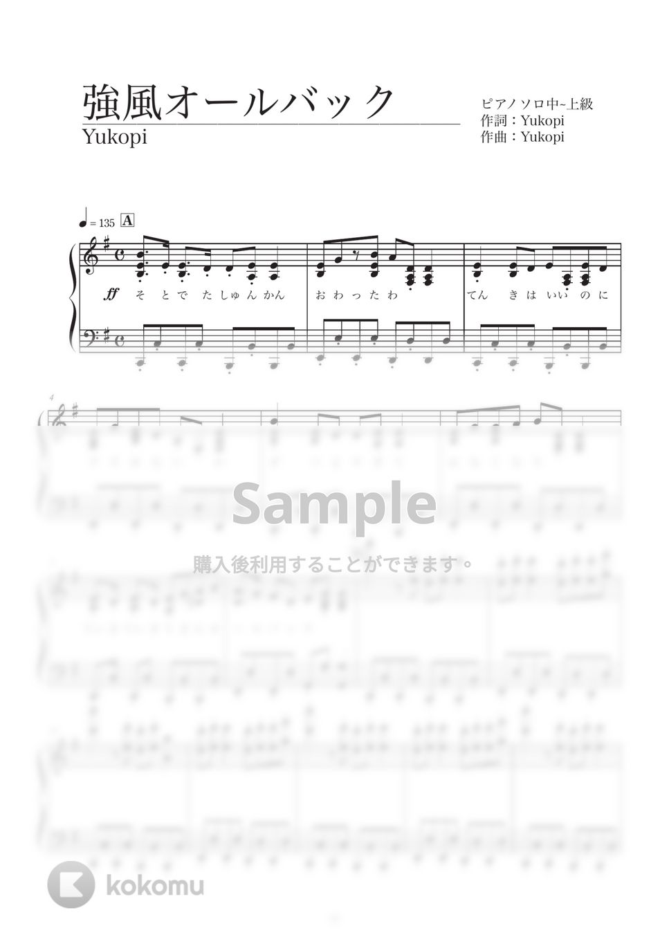 #強風オールバック #Yukopi #HARUKOBA #Vocaloid #ピアノ #ソロ #中級 #楽譜